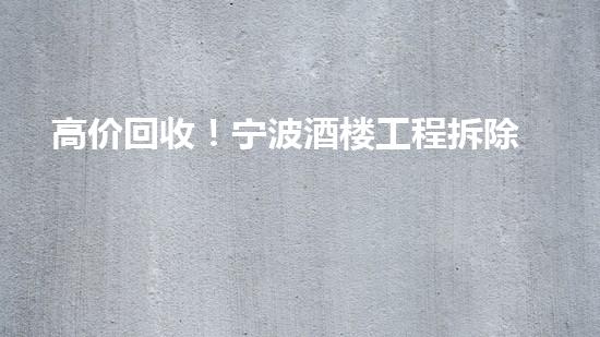 高价回收!宁波酒楼工程拆除材料快来卖!