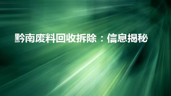 黔南废料回收拆除:信息揭秘